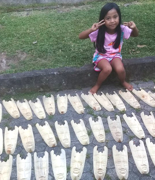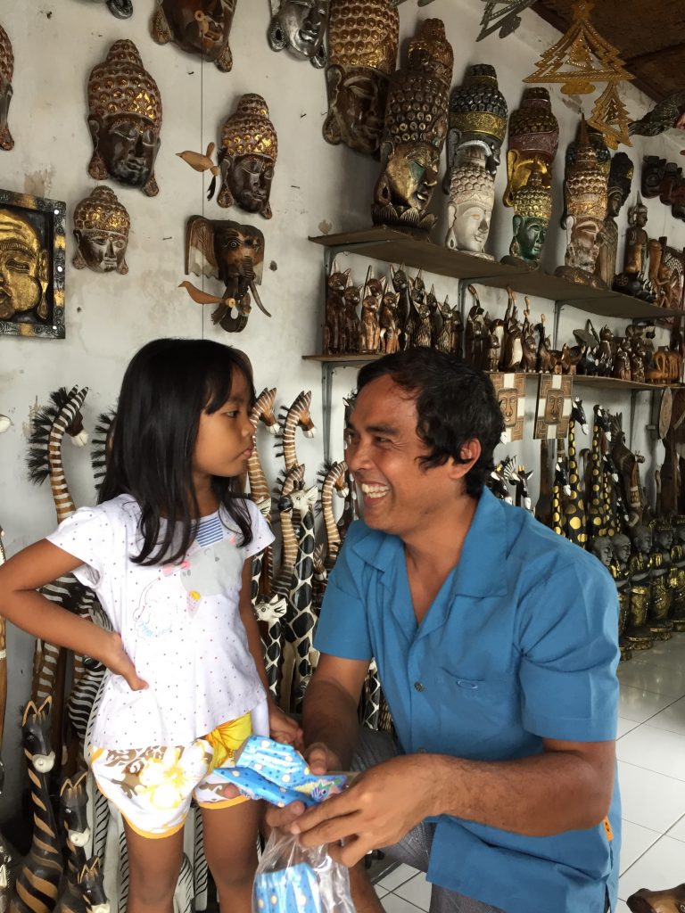 Our old friend and longtime producer Ketut, pictured here with his lovely daughter, is the youngest son in a family of woodcarvers. In fact his family is from a long line of woodcarvers, and he lives in the woodcarving village! In Bali, each village has it’s specialisation, so you have stone carving villages, wood carving villages, villages of painters etc.